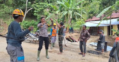 Pengaturan Jalan yang banjir dalam Rangka Operasi Mantap Brata Seulawah 2023-2024 di Desa Alue Bata, Kecamatan Tadu Raya oleh Polsek Tadu Raya Polres Nagan Raya
