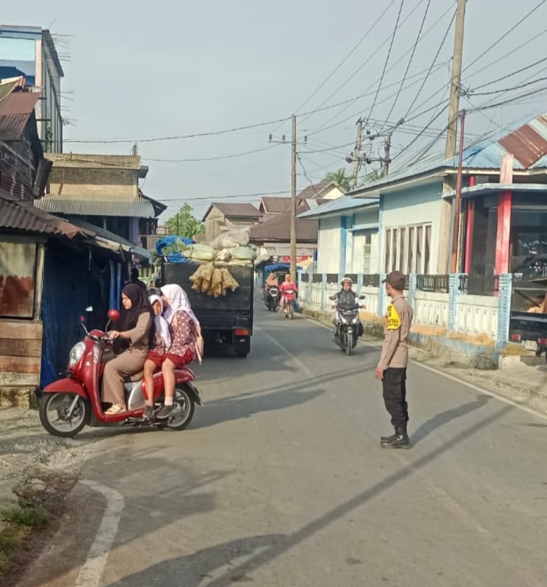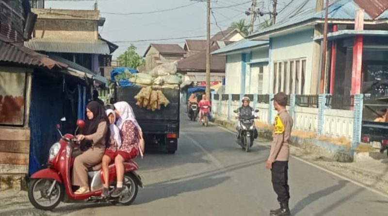 Nagan Raya – Personel Polsek Beutong melaksanakan kegiatan Strong Poin (pengaturan lalu lintas pagi) di sejumlah titik rawan kecelakaan dan kemacetan di wilayah hukumnya, Senin (08/09/2025).