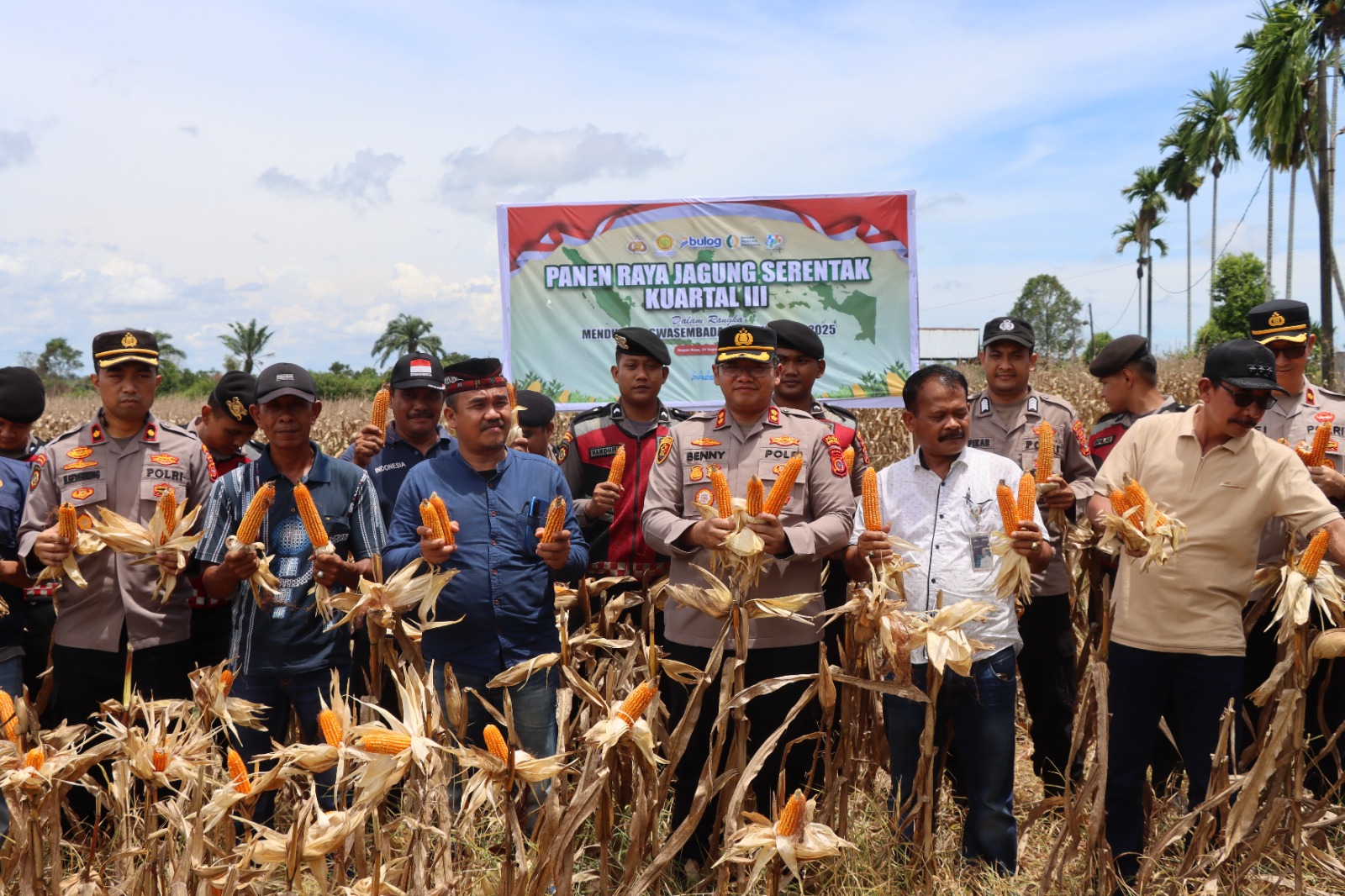 Nagan Raya, Sabtu 27 September 2025 – Kapolres Nagan Raya AKBP Dr. Benny Bathara, S.I.K., M.I.K. bersama Pejabat Utama (PJU) dan anggota Polres Nagan Raya menghadiri kegiatan Panen Raya Jagung Serentak Kuartal III dalam rangka mendukung program swasembada pangan nasional tahun 2025.