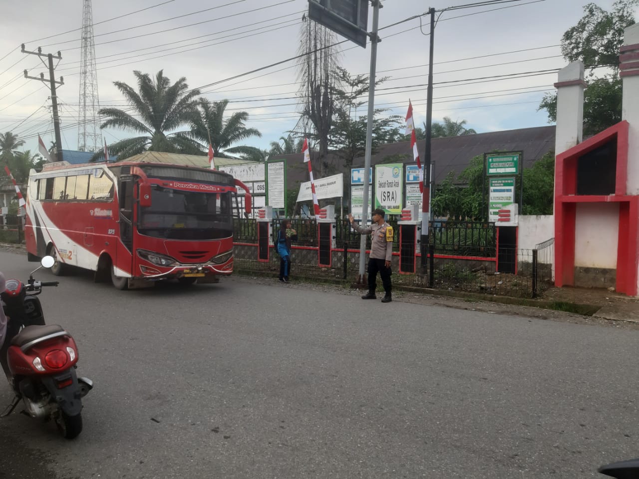 Nagan Raya – Personel Polsek Darul Makmur Polres Nagan Raya melaksanakan kegiatan Strong Point pagi melalui pengaturan lalu lintas di lokasi rawan laka dan kemacetan pada Sabtu, 04 Oktober 2025, pukul 07.00 hingga 08.00 WIB.