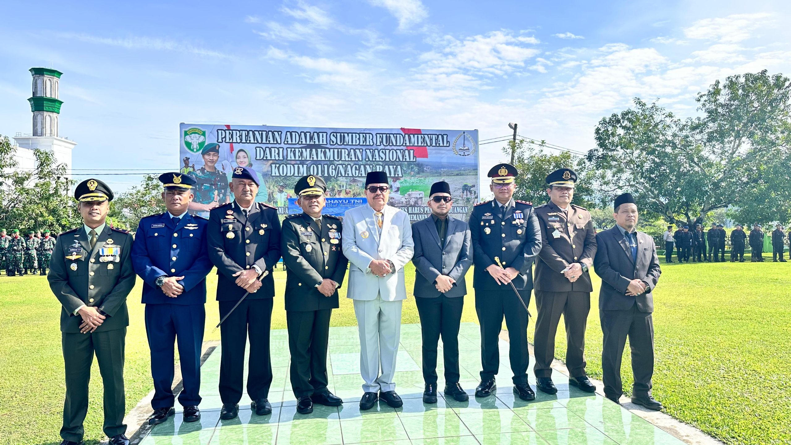 Kegiatan berlangsung khidmat dan penuh semangat kebersamaan dengan mengusung tema “TNI Prima, TNI Rakyat, Indonesia Maju.” Upacara dipimpin oleh Kasdim 0116/Nagan Raya, Kapten Ainun Rochman, dan dihadiri oleh unsur Forkopimda Kabupaten Nagan Raya, antara lain Bupati Nagan Raya Dr. T.R. Keumangan, S.H., M.H., Ketua DPRK Mohd Rizki Ramadhan, Kajari Djaka Bagus Wibisana, S.E., S.H., Ketua Pengadilan Negeri Suka Makmue Asraruddin Anwar, S.H., M.H., serta Danyon C Pelopor Sat Brimobda Polda Aceh Kompol Usman, S.E., M.M.