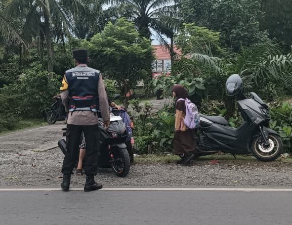 Nagan Raya, Senin (06 Oktober 2025) – Dalam rangka menjaga keamanan, keselamatan, ketertiban, dan kelancaran arus lalu lintas di pagi hari, Personel Polsek Kuala Pesisir Polres Nagan Raya melaksanakan kegiatan Strong Point atau Gatur Pagi Rutin di Jalan Nasional Meulaboh–Blang Pidie, tepatnya di depan SD Negeri Desa Suak Puntong, Kecamatan Kuala Pesisir, Kabupaten Nagan Raya.