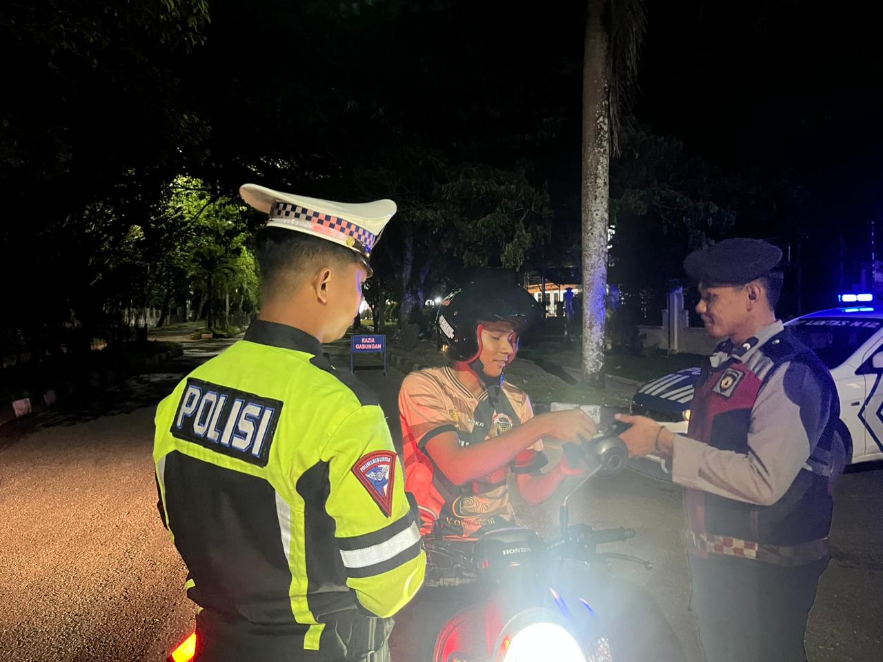 Dari hasil razia tersebut, petugas menemukan beberapa pelanggaran ringan seperti pengendara tanpa helm, kendaraan tanpa lampu penerangan, dan tanpa plat nomor kendaraan (TNKB). Terhadap pelanggaran tersebut, petugas memberikan teguran lisan secara humanis.