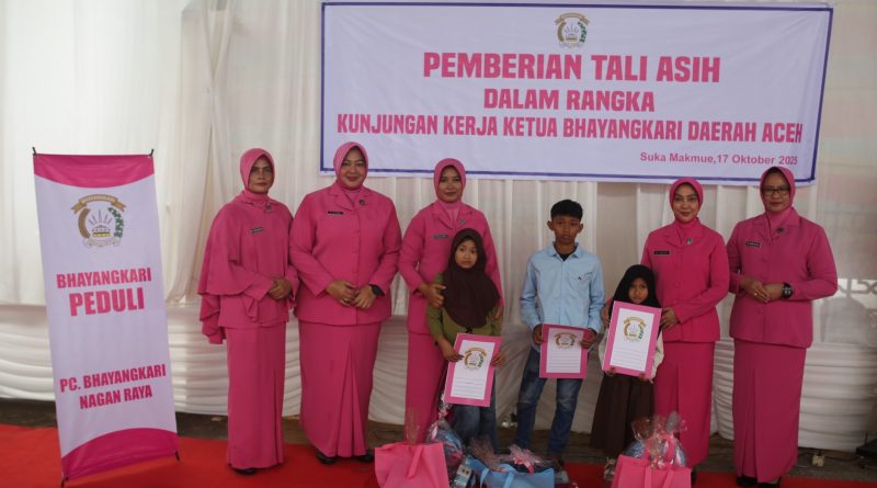 Selain memberikan santunan kepada anak yatim, Ketua Bhayangkari Daerah Aceh juga memberikan tali asih kepada keluarga personel Polres Nagan Raya yang sedang mengalami musibah atau sakit, sebagai wujud perhatian dan dukungan moril dari Bhayangkari Daerah Aceh.