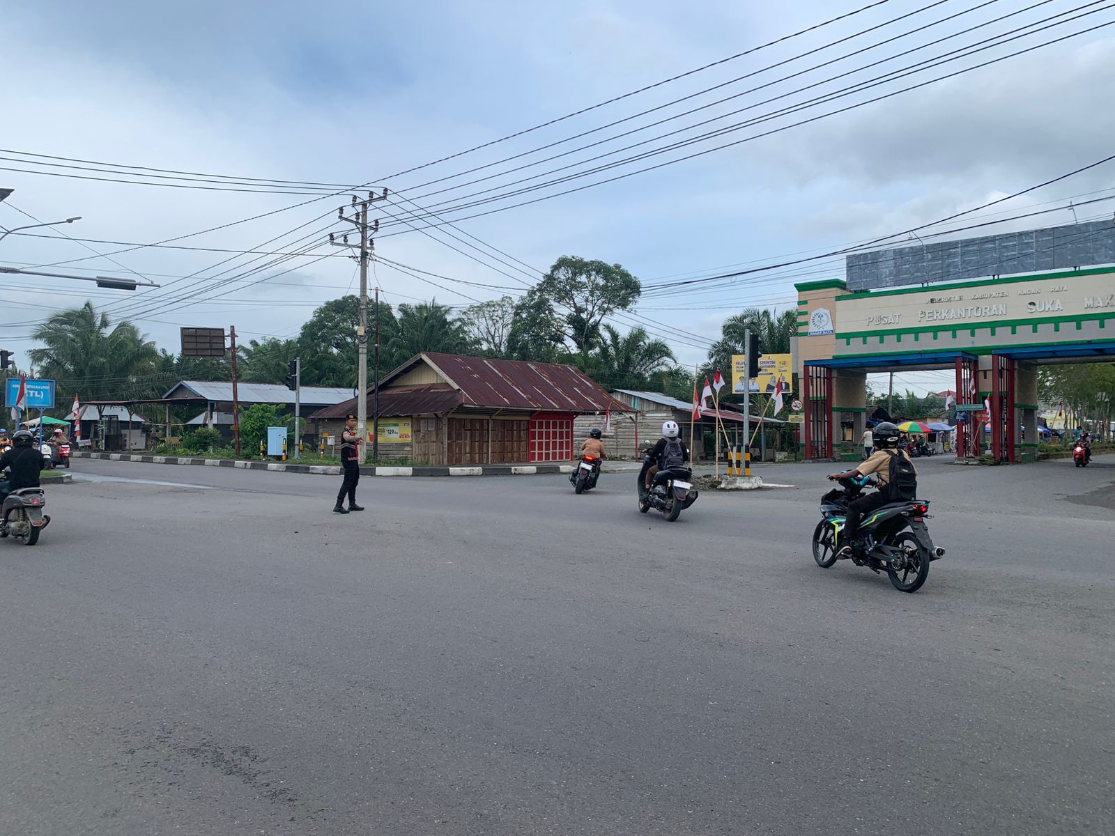 Selama kegiatan berlangsung, petugas tampak aktif melakukan pengaturan di sejumlah ruas jalan utama dan simpang padat kendaraan di wilayah Kabupaten Nagan Raya.