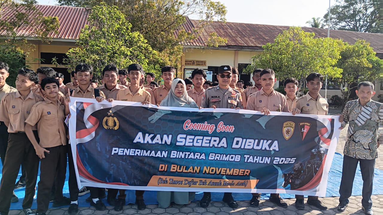 Nagan Raya – Polsek Kuala Polres Nagan Raya terus mendorong dan membuka peluang bagi putra–putri terbaik daerah untuk bergabung dengan Kepolisian Negara Republik Indonesia. Pada Jumat (31/10/2025), personel Polsek Kuala melaksanakan sosialisasi penerimaan Bintara Brimob Polri tahun 2025 di SMAN 2 Kuala, Desa Pulo Ie, Kecamatan Kuala, Kabupaten Nagan Raya.
