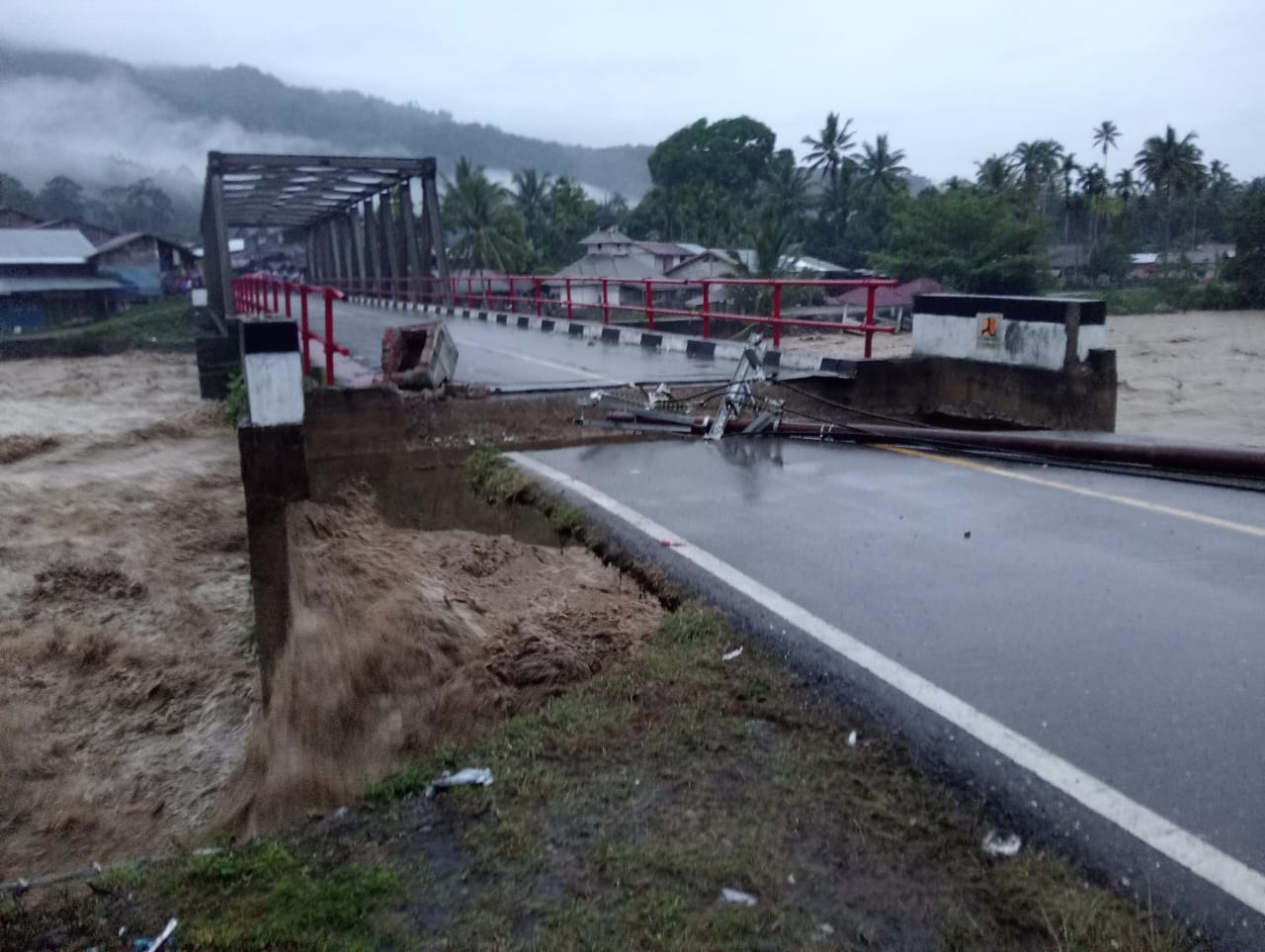 Luapan air sungai mengakibatkan dua jalur utama terputus total. Akses jalan nasional di depan Pospol menuju wilayah Nagan Raya tidak dapat dilalui, sem