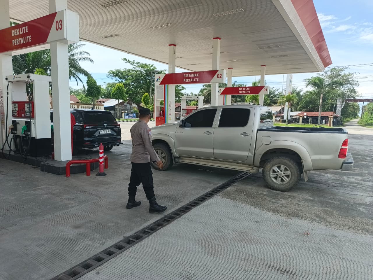 Bhabinkamtibmas Polsek Kuala Pesisir Lakukan Patroli di SPBU Suak Puntong untuk Cegah Kemacetan