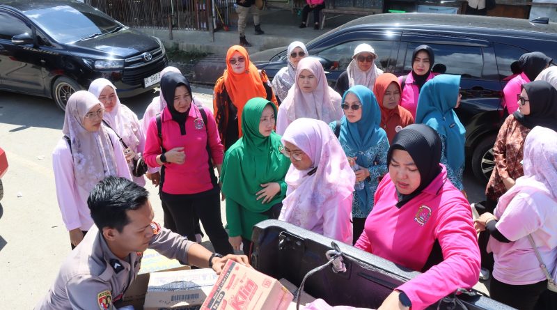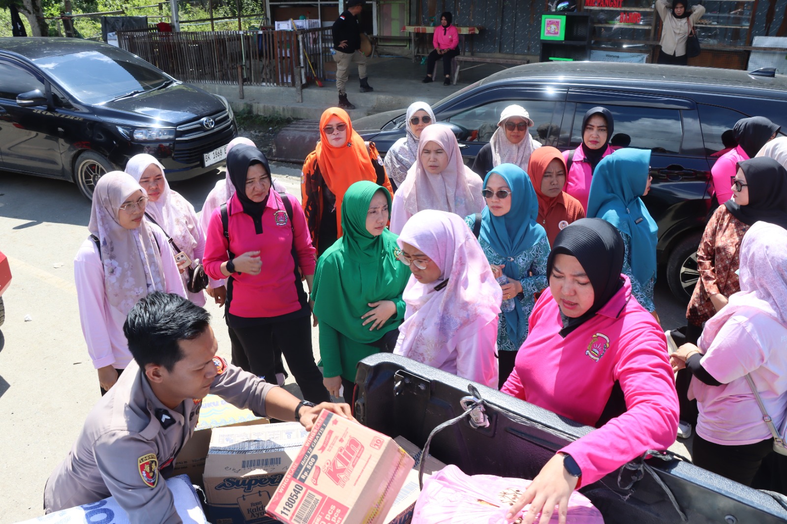 Dalam kesempatan itu, Ibu Ketua Bhayangkari menyerahkan berbagai bantuan berupa sembako, perlengkapan bayi, pakaian layak pakai, serta kebutuhan dasar lainnya bagi warga yang mengungsi. Ia juga menyampaikan rasa prihatinnya atas musibah yang menimpa masyarakat.