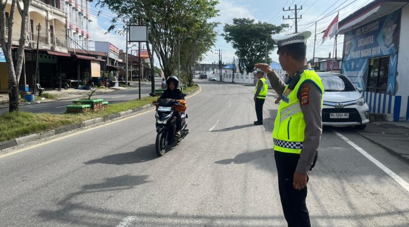 Nagan Raya – Dalam rangka menciptakan keamanan, keselamatan, ketertiban, dan kelancaran lalu lintas (Kamseltibcar Lantas), Satuan Lalu Lintas (Sat Lantas) Polres Nagan Raya melaksanakan kegiatan pengaturan lalu lintas sekaligus sosialisasi tertib berlalu lintas kepada para pengendara sepeda motor di wilayah hukumnya.