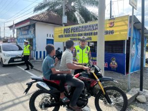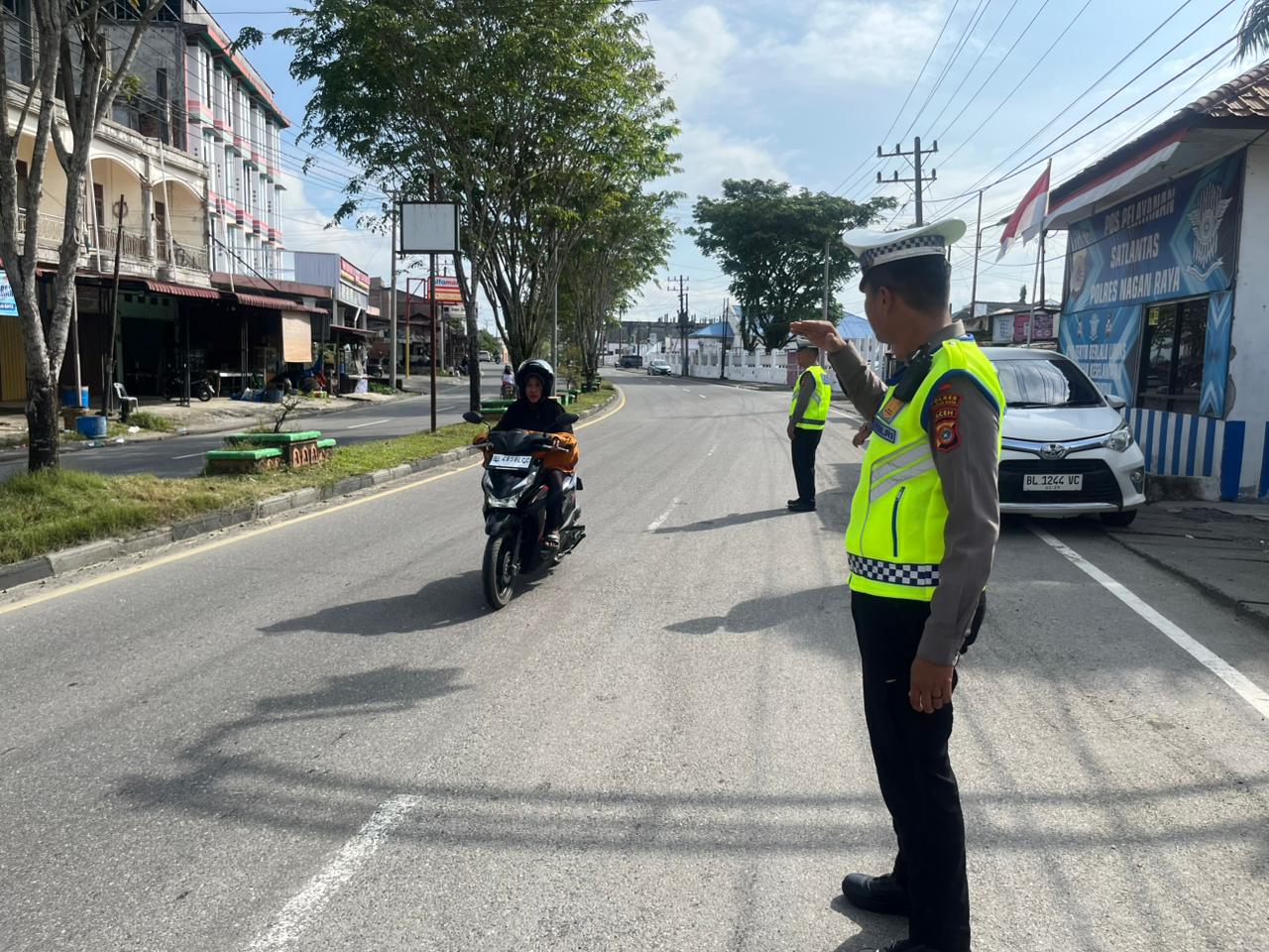 Nagan Raya – Dalam rangka menciptakan keamanan, keselamatan, ketertiban, dan kelancaran lalu lintas (Kamseltibcar Lantas), Satuan Lalu Lintas (Sat Lantas) Polres Nagan Raya melaksanakan kegiatan pengaturan lalu lintas sekaligus sosialisasi tertib berlalu lintas kepada para pengendara sepeda motor di wilayah hukumnya.