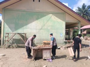 Nagan Raya – Personel Polres Nagan Raya kembali melaksanakan kegiatan gotong royong pembersihan sekolah yang terdampak banjir bandang di SD Negeri Lamie, Desa Lamie, Kecamatan Darul Makmur, Kabupaten Nagan Raya, Jumat (26/12/2025).
