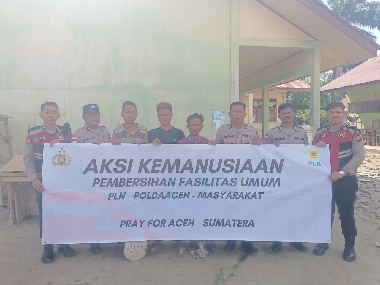 Kegiatan yang dimulai sejak pukul 09.00 WIB tersebut melibatkan personel gabungan dari satuan fungsi Polres Nagan Raya, jajaran Polsek Darul Makmur, serta masyarakat setempat. Pembersihan difokuskan pada sisa lumpur dan material banjir yang mengendap di lingkungan sekolah akibat banjir bandang yang terjadi pada 26 November 2025.