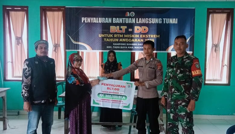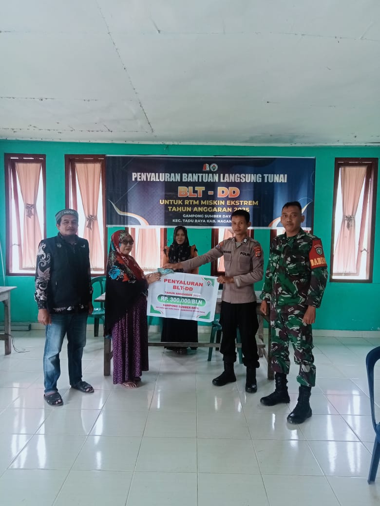 Nagan Raya – Bhabinkamtibmas Polsek Tadu Raya melaksanakan monitoring dan pengamanan kegiatan penyaluran Bantuan Langsung Tunai Dana Desa (BLT-DD) bagi Rumah Tangga Miskin Ekstrem/Keluarga Penerima Manfaat (KPM) Tahun Anggaran 2025 di Desa Sumber Daya, Kecamatan Tadu Raya, Kabupaten Nagan Raya, Selasa (30/12/2025).