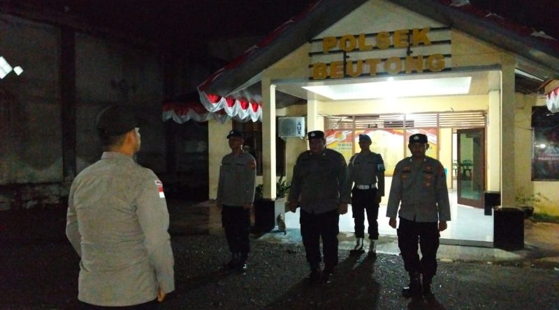 Kegiatan apel gabungan dilaksanakan sekitar pukul 22.00 WIB di halaman Mapolsek Beutong, dipimpin oleh Kasium Polsek Beutong Aipda Nazli. Apel tersebut melibatkan 6 personel Polsek Beutong dan 4 personel Koramil Beutong sebagai wujud sinergitas TNI–Polri dalam menjaga keamanan wilayah.