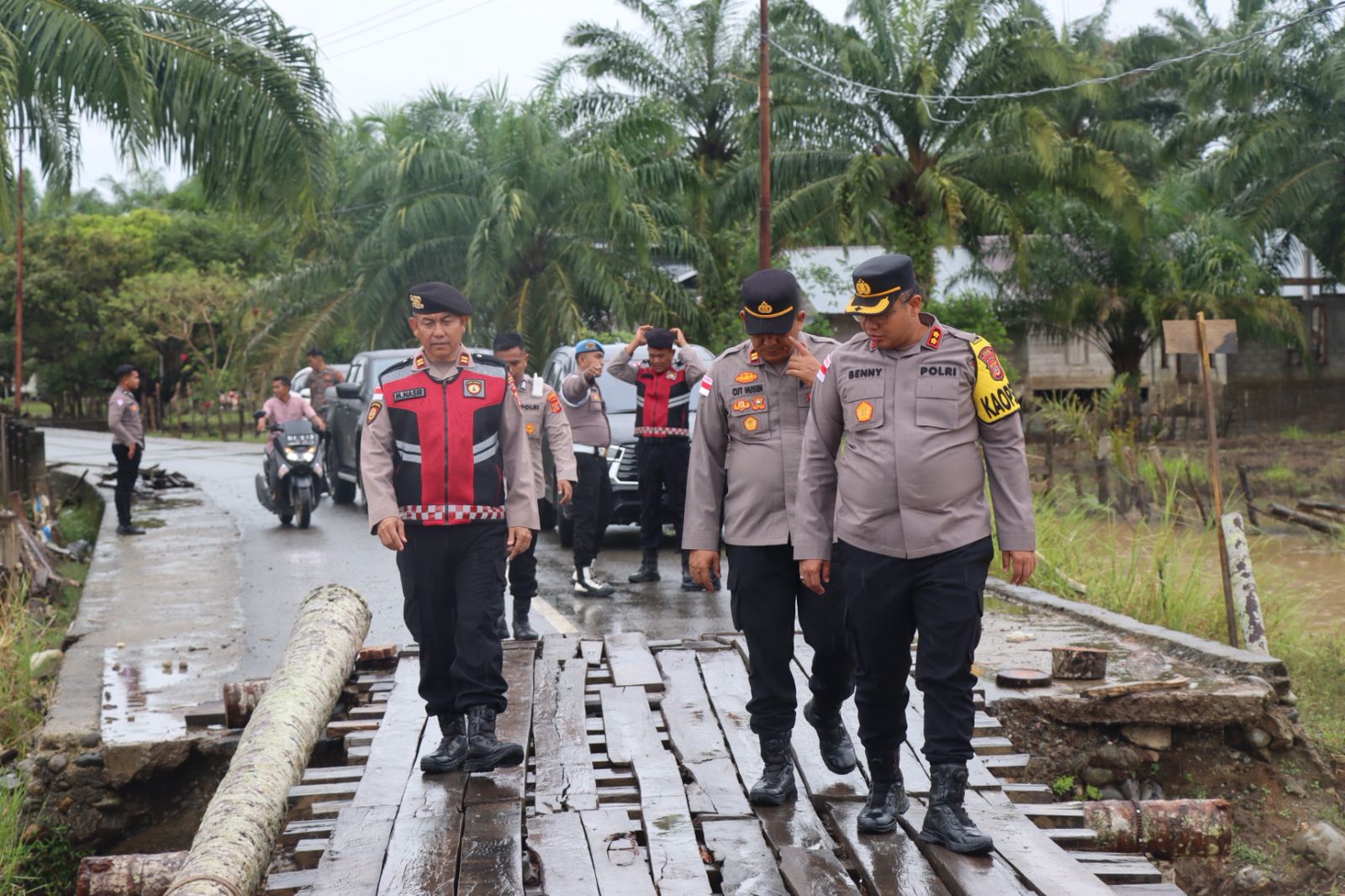 Kapolres Nagan Raya Tinjau Jembatan Rusak Akibat Banjir di Desa Alue Siron