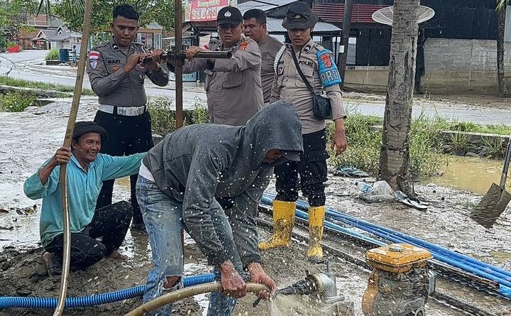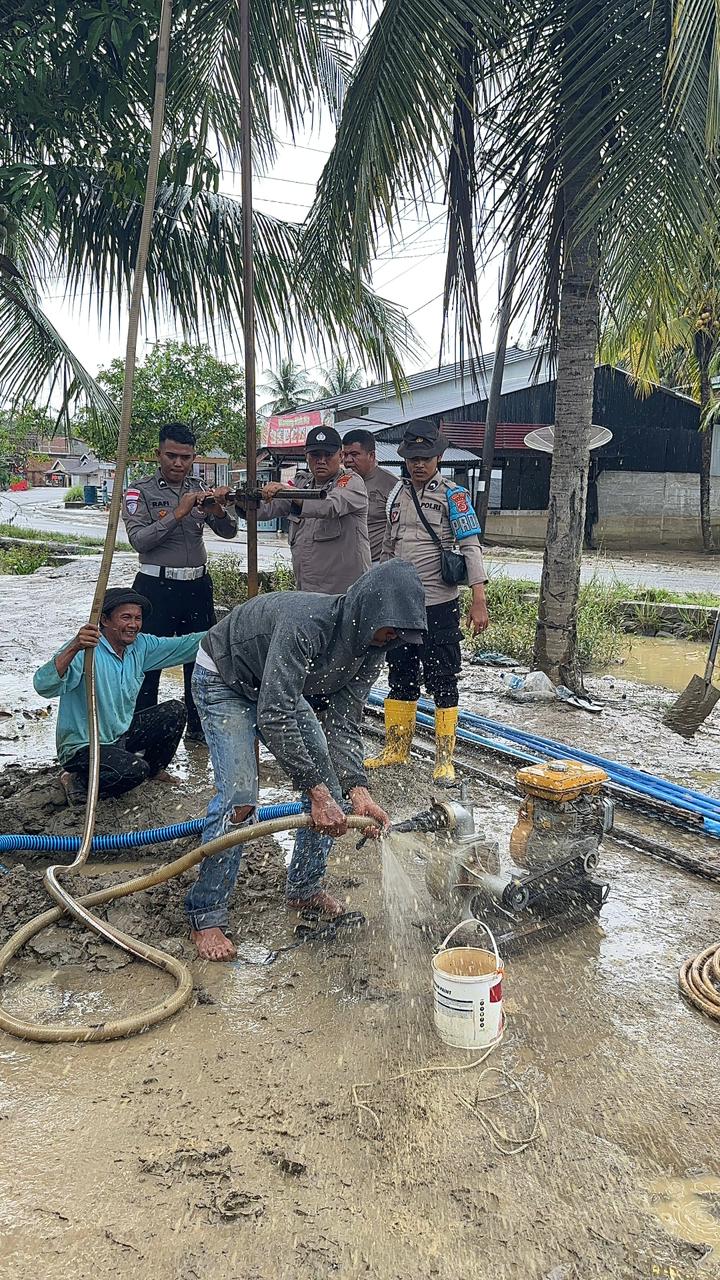 Polres Nagan Raya Gelar Pembersihan Material Banjir dan Bangun Sumur Bor di TPA Babul Jannah
