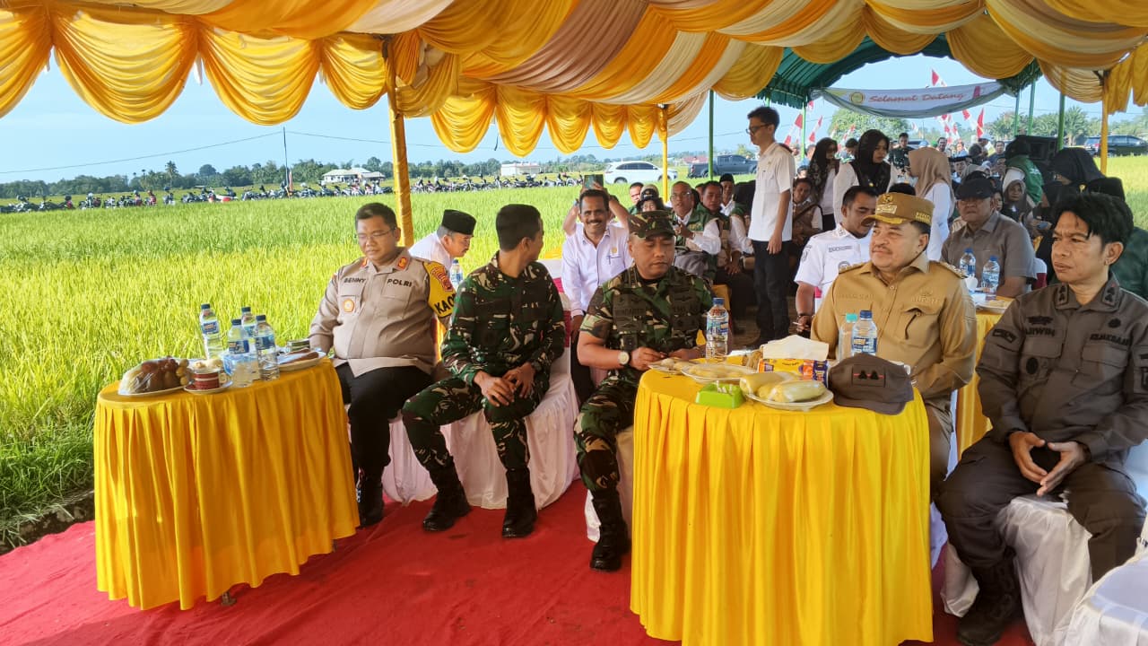 Kegiatan tersebut dihadiri oleh Danrem 012/Teuku Umar Kolonel Inf Windarto, S.Sos., M.M., Bupati Nagan Raya Dr. TR. Keumangan, S.H., M.H., Dandim 0116/Nagan Raya Letkol Inf Irfan Hade Fitrianto, Kapolres Nagan Raya AKBP Dr. Benny Bathara, S.I.K., M.I.K., Kajari Nagan Raya Arwin Adinata, S.H., M.H., Sekda Nagan Raya Zulkifli, S.Pd., unsur DPRK Nagan Raya, pimpinan OPD terkait, Camat Seunagan, serta para keuchik, penyuluh pertanian lapangan (PPL), dan kelompok tani.