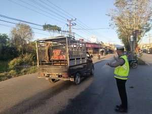 Sat Lantas Polres Nagan Raya Laksanakan Pengaturan Lalu Lintas di Jalan Nasional
