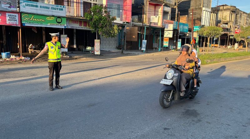Satlantas Polres Nagan Raya Gencarkan Sosialisasi Tertib Lalu Lintas dan Strong Point Pagi
