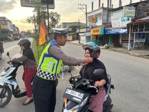 Satlantas Polres Nagan Raya Gencarkan Sosialisasi Tertib Lalu Lintas dan Strong Point Pagi