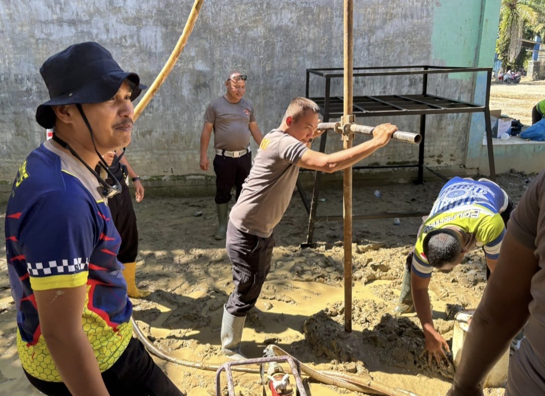 “Bantuan sumur bor ini diharapkan dapat membantu memenuhi kebutuhan air bersih bagi pihak sekolah dan masyarakat sekitar, sehingga aktivitas belajar mengajar dapat kembali berjalan normal pasca banjir,” ujar IPTU M. Arie Syahputra.