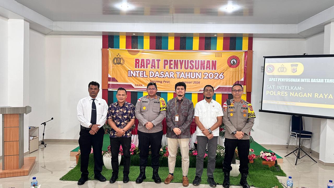 Nagan Raya – Kapolres Nagan Raya AKBP Dr. Benny Bathara, S.I.K., M.I.K. membuka secara resmi Rapat Penyusunan Intelijen Dasar Tahun 2026 yang digelar di Hotel Bintang Syariah, Kabupaten Nagan Raya, Kamis (22/1/2026) pagi.