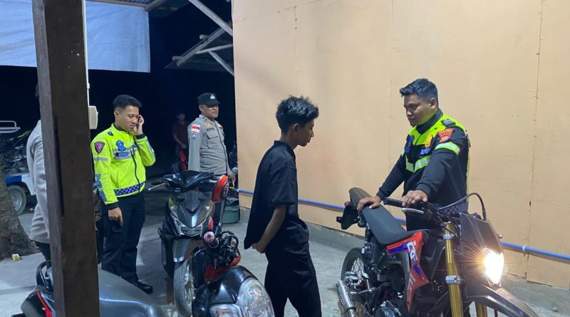Patroli Malam Polsek Darul Makmur Tertibkan Knalpot Brong dan Remaja Nongkrong Larut Malam