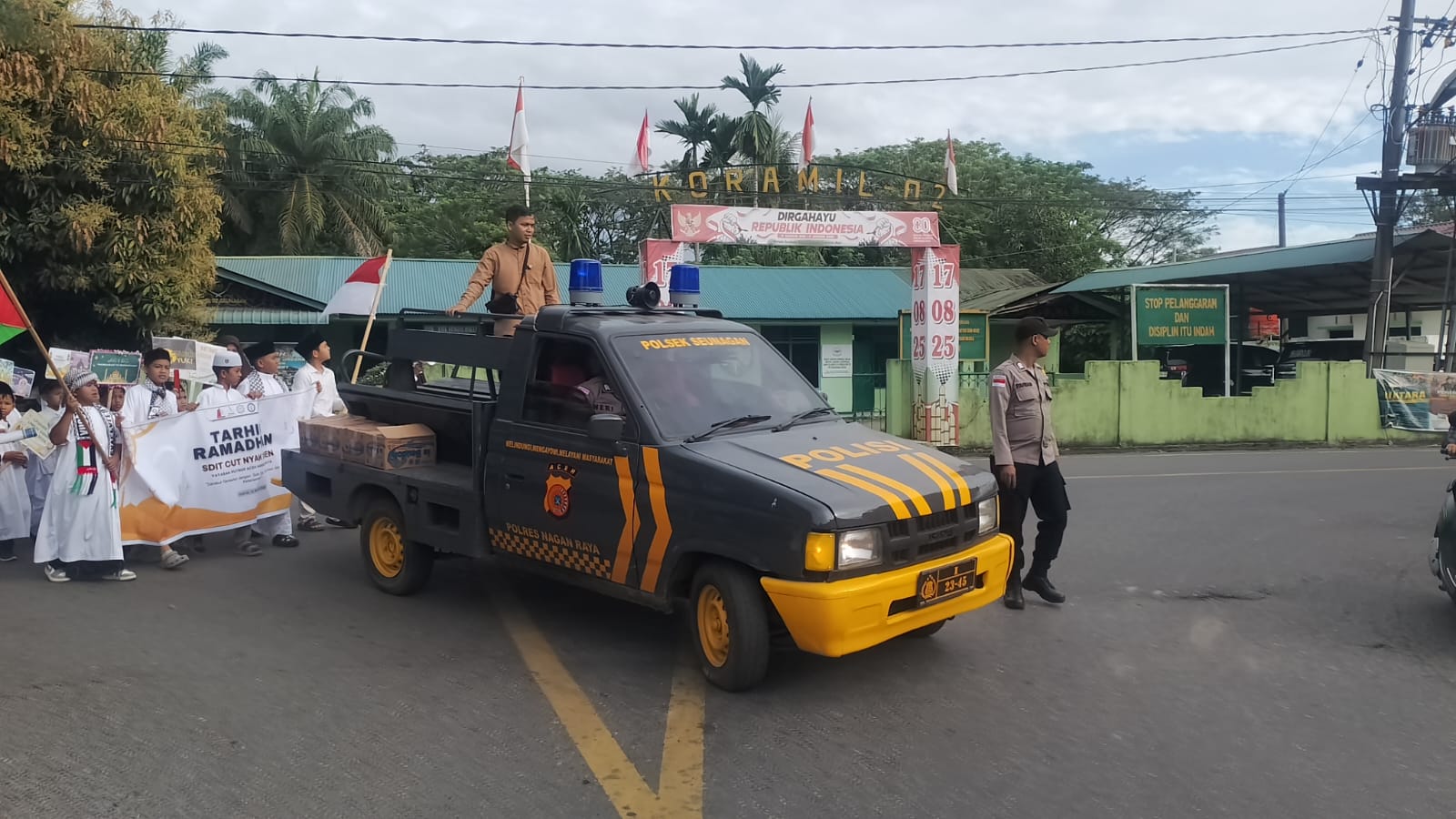 Polsek Seunagan Laksanakan Pengamanan Pawai Semarak Sambut Ramadhan, Murid SDIT Cut Nyak Dhien