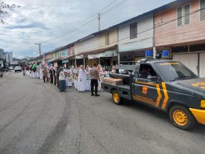 Untuk memastikan kegiatan berjalan lancar dan tertib, personel Polsek Seunagan turut melaksanakan pengamanan dan pengawalan (voorrijder) sepanjang rute pawai.