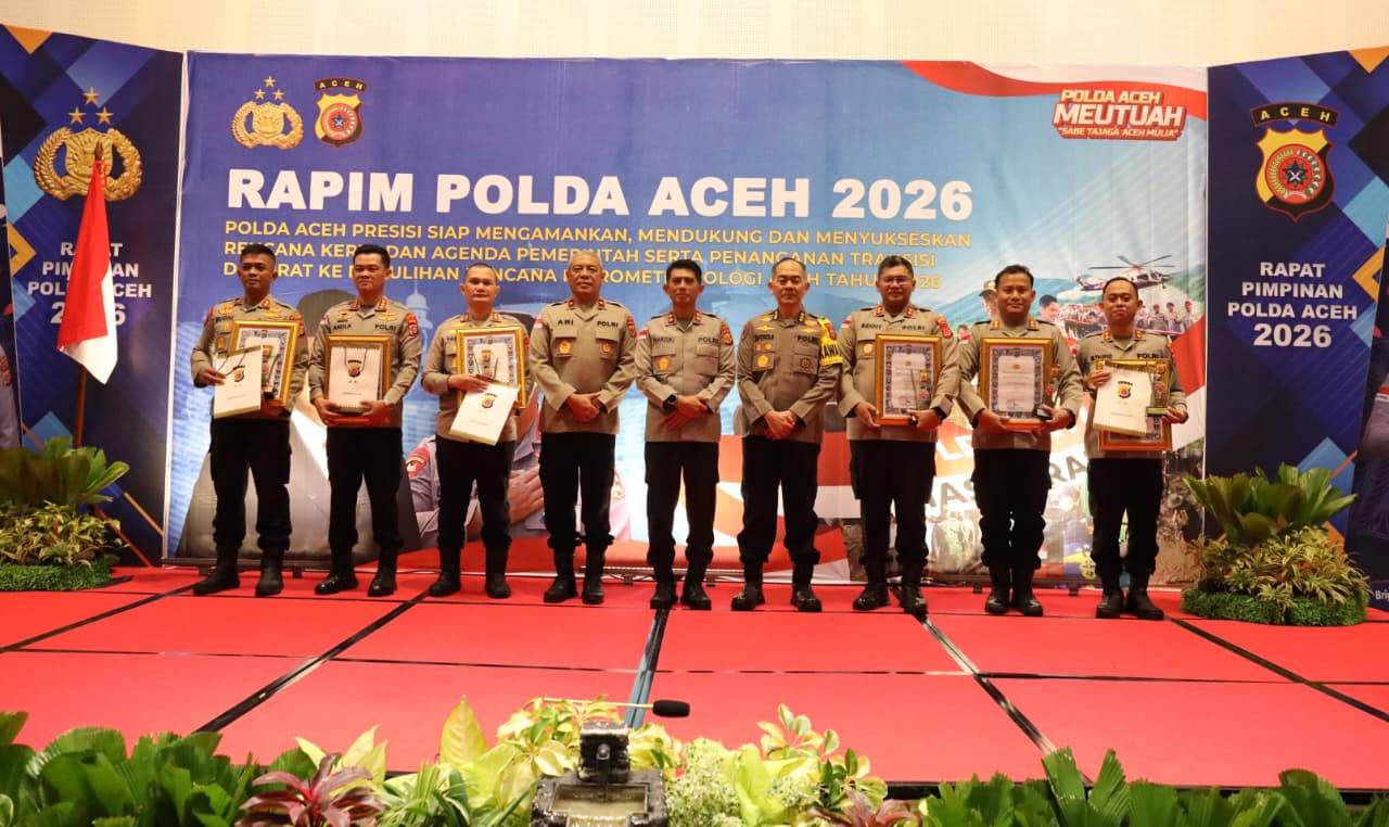Banda Aceh – Polres Nagan Raya kembali menorehkan prestasi membanggakan. Pada Selasa, 24 Februari 2026 pukul 08.00 WIB, Polres Nagan Raya menerima dua piagam penghargaan dari Kapolda Aceh dalam kegiatan Rapat Pimpinan (Rapim) Polda Aceh Tahun 2026 yang digelar di Aula Hotel The Pade, Banda Aceh.