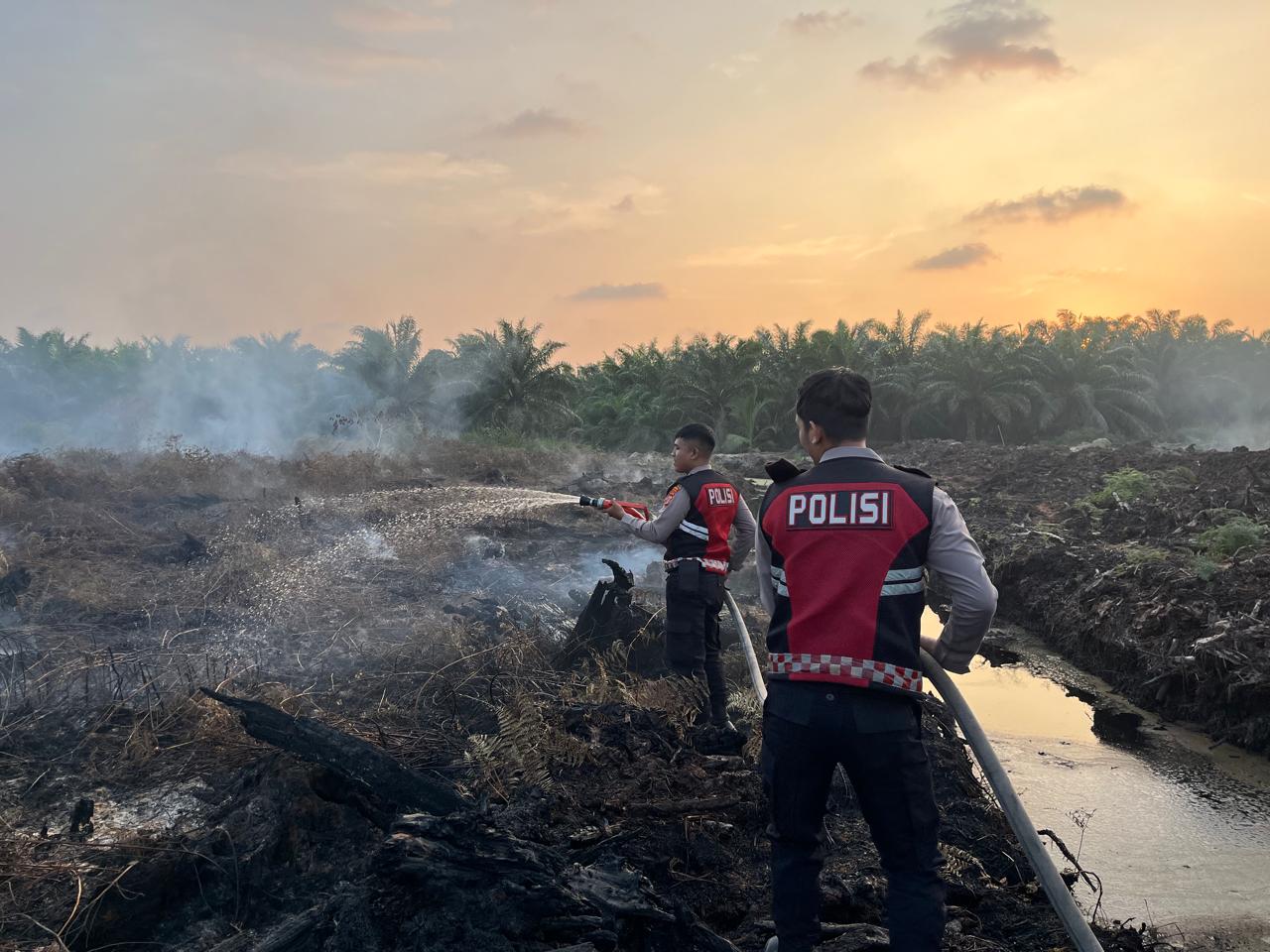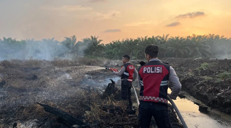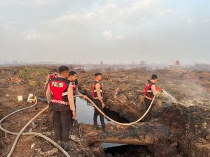 Nagan Raya – Personel Satuan Samapta Polres Nagan Raya bersama anggota Polsek Kuala Pesisir melakukan upaya pemadaman kebakaran hutan dan lahan (Karhutla) yang terjadi di Desa Suak Puntong, Kecamatan Kuala Pesisir, Kabupaten Nagan Raya, Sabtu (07/03/2026).