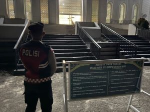 Selain melakukan penjagaan, personel juga melaksanakan pemantauan situasi di sekitar masjid guna memastikan kondisi tetap aman dan kondusif selama berlangsungnya ibadah.
