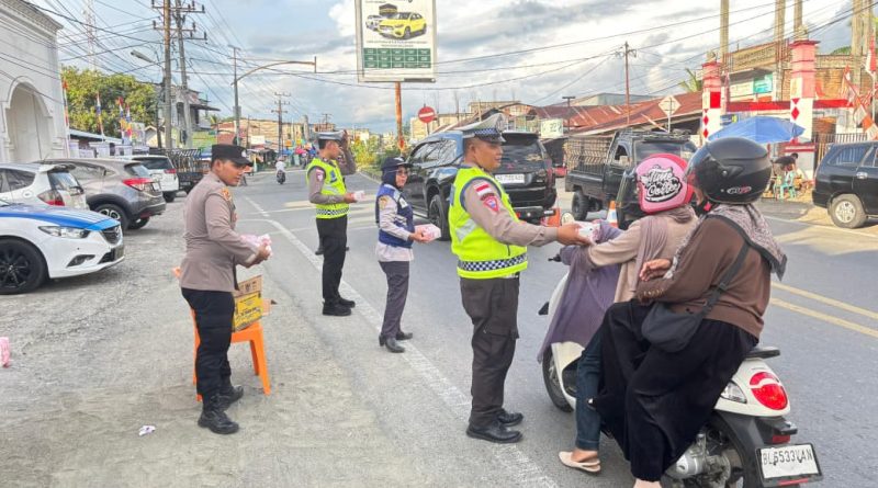 Nagan Raya – Dalam rangka mendukung pelaksanaan Operasi Ketupat Seulawah 2026 serta menyemarakkan bulan suci Ramadhan 1447 Hijriah, Satuan Lalu Lintas (Satlantas) Polres Nagan Raya menggelar kegiatan sosial berupa pembagian takjil kepada para pengguna jalan, Senin (16/3/2026) sore.