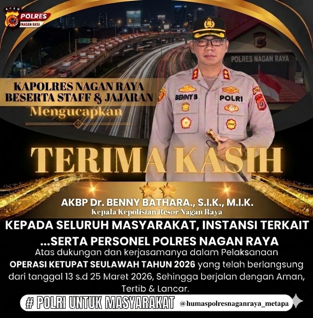 Kapolres Nagan Raya menyampaikan bahwa keberhasilan Operasi Ketupat Seulawah 2026 tidak terlepas dari peran aktif seluruh elemen masyarakat, dukungan instansi pemerintah, serta dedikasi personel yang bertugas di lapangan, baik pada pos pengamanan, pos pelayanan, maupun kegiatan patroli di titik-titik strategis.