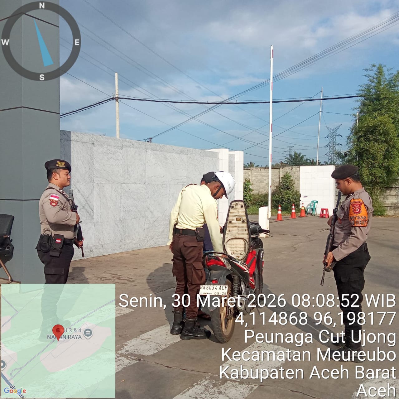 Nagan Raya – Personel Satuan Samapta Polres Nagan Raya melaksanakan patroli rutin pengamanan objek vital (Obvit) di kawasan PLTU 3-4 PT. MPG, Desa Suak Puntong, Kecamatan Kuala Pesisir, Kabupaten Nagan Raya, pada Senin, 30 Maret 2026, mulai pukul 08.00 WIB hingga selesai.