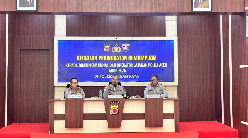 Nagan Raya – Dalam rangka meningkatkan profesionalisme serta kapasitas personel di lapangan, Polres Nagan Raya menggelar kegiatan peningkatan kemampuan kepada Bhabinkamtibmas dan operator jajaran Polda Aceh Tahun 2026. Kegiatan tersebut dilaksanakan pada Selasa, 07 April 2026 pukul 09.45 WIB di Aula Polres Nagan Raya dan diikuti oleh personel Bhabinkamtibmas.
