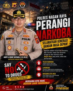Kapolres Nagan Raya, AKBP Dr. Benny Bathara, S.I.K., M.I.K, menegaskan bahwa narkoba merupakan musuh bersama yang harus diperangi secara serius dan berkelanjutan. Ia mengajak seluruh elemen masyarakat untuk bersatu dalam memutus mata rantai peredaran gelap narkotika hingga ke akar-akarnya.