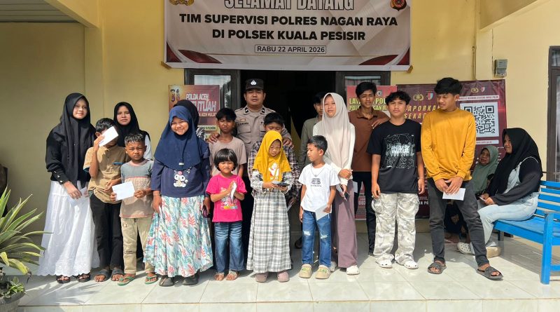 Nagan Raya, Jum’at 24 April 2026 – Kepedulian terhadap sesama kembali ditunjukkan oleh jajaran Polsek Kuala Pesisir melalui kegiatan Jumat Berkah dengan memberikan santunan kepada anak yatim piatu di Kecamatan Kuala Pesisir, Kabupaten Nagan Raya.