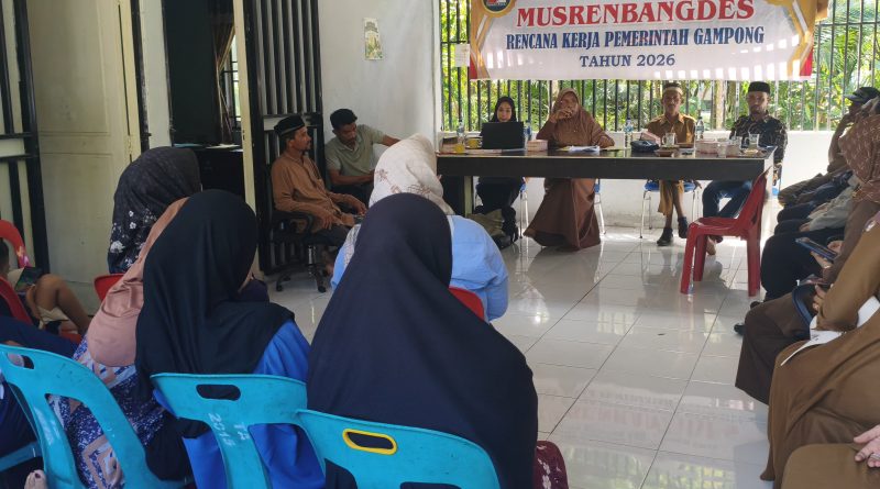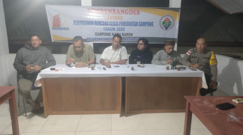 Nagan Raya – Bhabinkamtibmas Polsek Darul Makmur melaksanakan monitoring kegiatan Musyawarah Perencanaan Pembangunan Gampong (Musrenbang) sekaligus Musyawarah Gampong Pembahasan Rencana